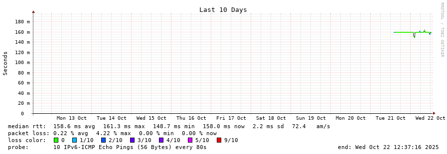 17 > 2a02:a58:400c:5::2 (2a02:a58:400c:5::2) [AS8953] 159.774ms 159.772ms 159.791ms