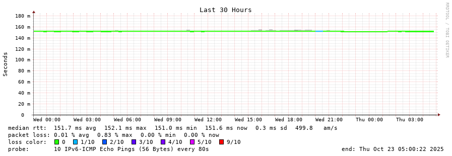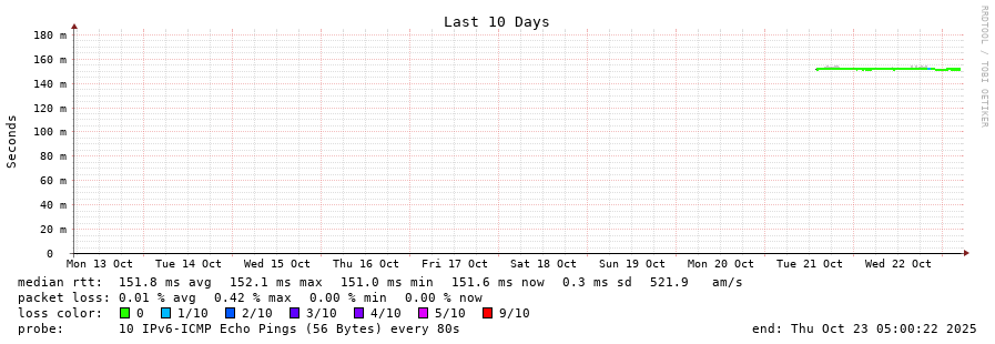 14 > 2001:ac8:10:10::d185 (2001:ac8:10:10::d185) [AS9009] 153.296ms 153.340ms 153.271ms