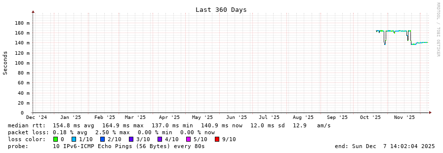 traceroute to 2a03:bb40:1::b (2a03:bb40:1::b), 30 hops max, 80 byte packets - Generated at 2025-12-07 08:45:02