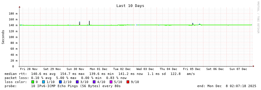 12 > 2a03:bb40:1::b (2a03:bb40:1::b) [AS61211] 140.947ms 140.481ms 140.785ms