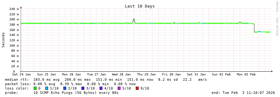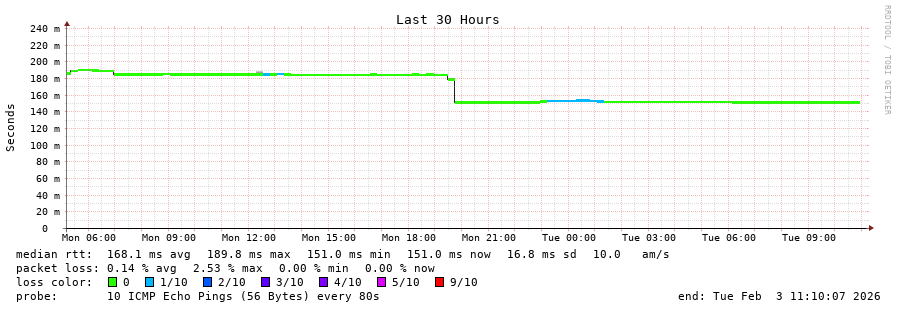 10 > 84.16.15.66 (84.16.15.66) [AS12956] 68.104ms 68.147ms 68.089ms